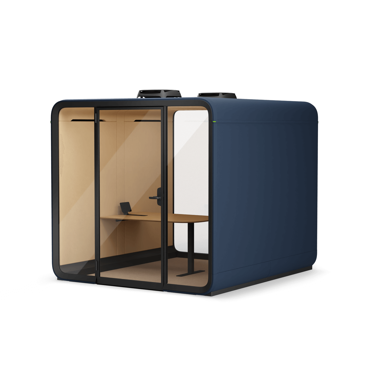 Egy strapabíró akusztikus irodai fülke kompakt kialakításban.