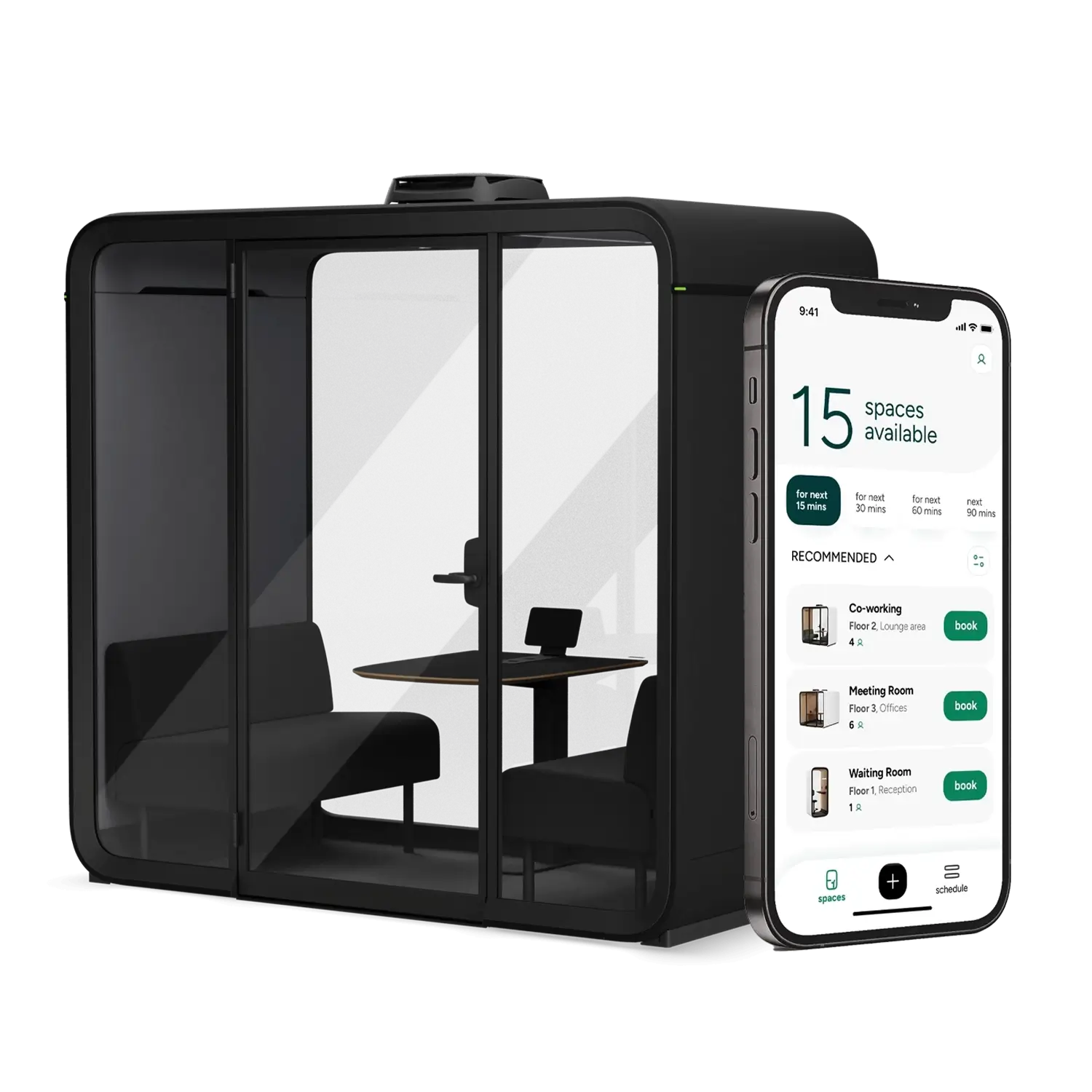 Használja az azonnali foglalási lehetőségeket és az interaktív naptárkapcsolatot bármikor, bárhonnan a Framery alkalmazáson keresztül – előre megtervezve vagy útközben.
